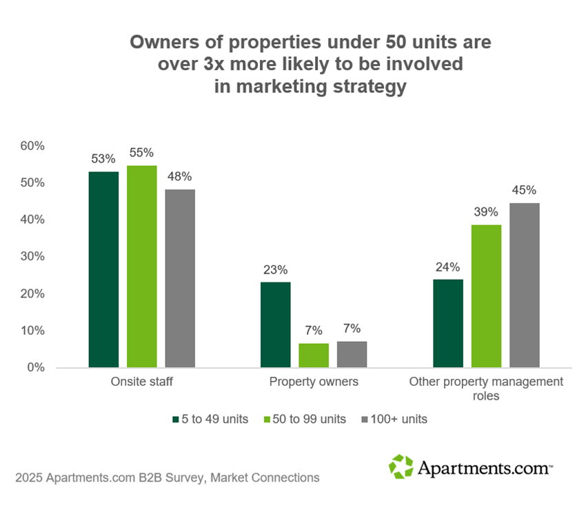 But among properties with fewer units, the survey revealed, owners are significantly more likely to play an active role in determining advertising strategies.