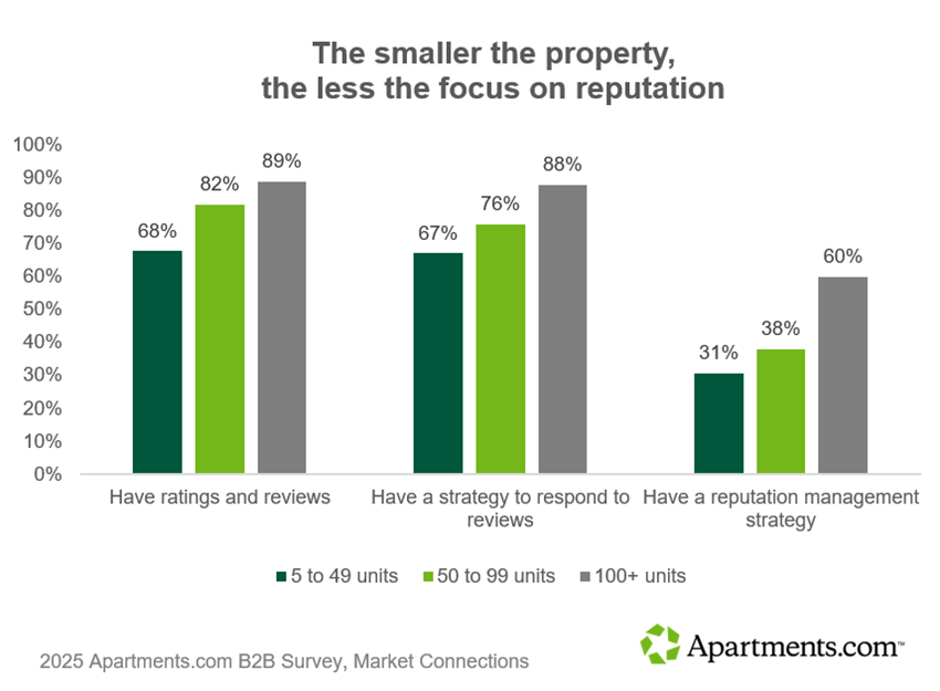 A strong reputation can drive revenue and occupancy. But for properties with fewer units, this consideration can lag behind other priorities.