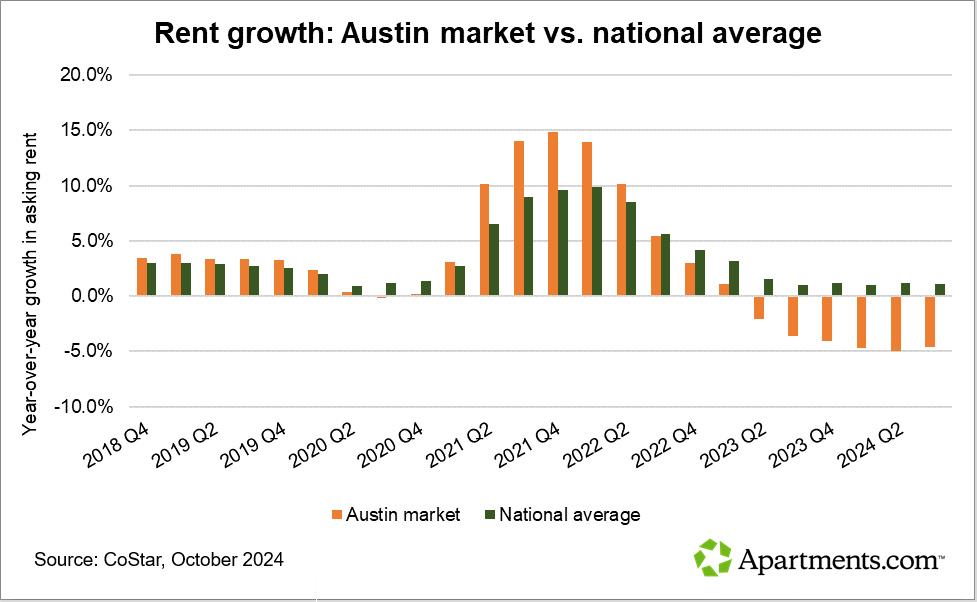 Austin holds the unenviable position of leading the nation for vacancy and negative rent growth.