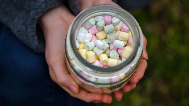This no-fuss option is perfect if you don’t have the time or resources to host an onsite event. Just set up a jar of your favorite treats — pink or red jellybeans are always a fun option, but you can try chocolates, marshmallows, candy hearts, or even gummy bears.