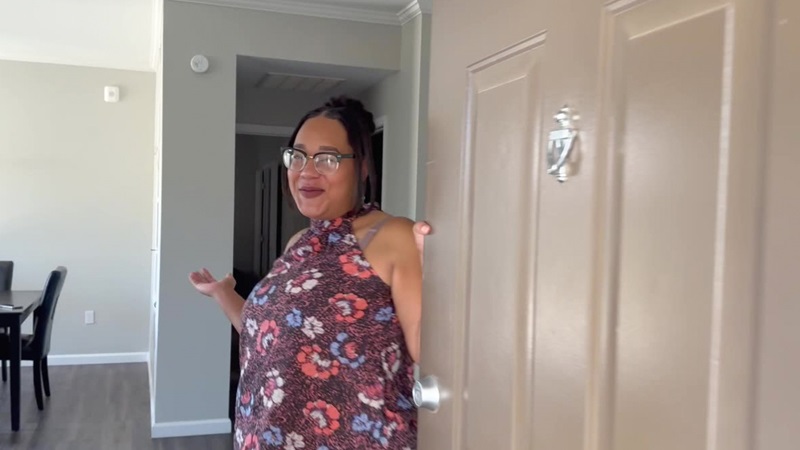 Caption: Through Entryway, Atiana found a job as a leasing agent, where she and her family live on site. Image courtesy of Entryway.