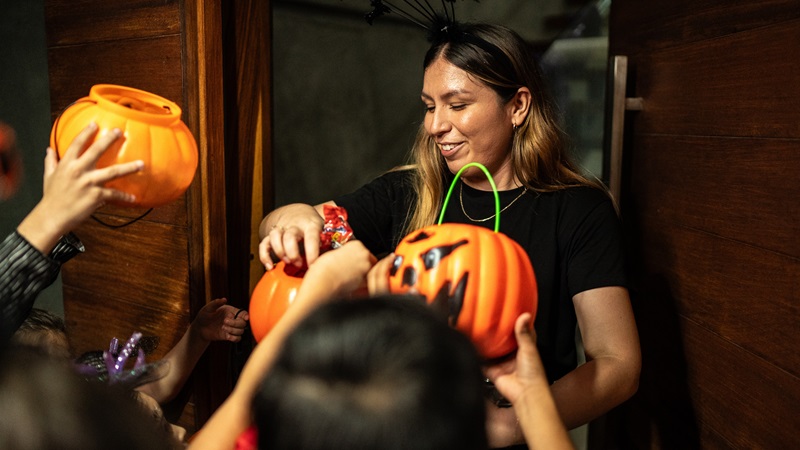For a sweet boost of energy throughout the month, fill a bowl with wrapped sweets. Place it in a central location for residents and visitors to enjoy, like your leasing office or community room. This low-key option is a simple way to recognize Halloween without much planning needed.