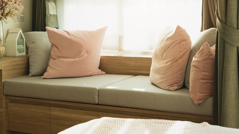 - When building new units or renovating existing apartments, create built-in window seating with hidden storage