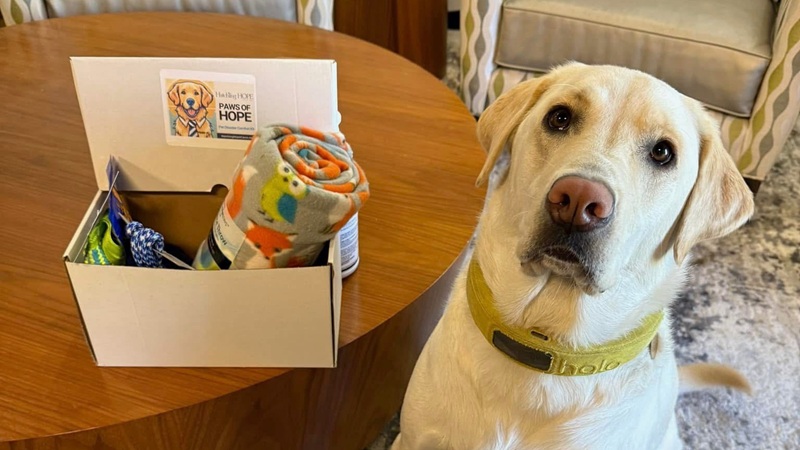As part of the nonprofit’s new Paws for Hope program, disaster victims can receive essential items for their pets, including a leash, soft blanket, water bowl, food, and treats.