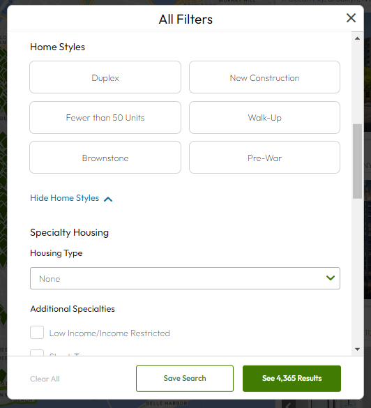 Renters seeking out small and mid-sized properties can apply the Fewer than 50 Units filter to refine their search. And renters looking for properties under five units can select the Duplex filter to find the listings that meet their needs.