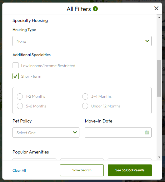 If you offer short-term leases, you can now easily connect with renters interested in the same lease length you offer. By driving searches that are a closer match, this refined search functionality helps increase the quality of your leads.