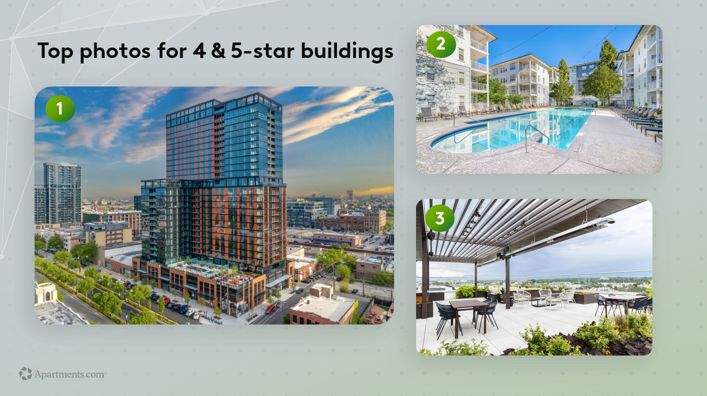 When selecting a primary photo for their listing, properties should avoid selecting those of bathrooms, floor plans, and fitness centers. Anandan also discouraged posting images that include text overlays.